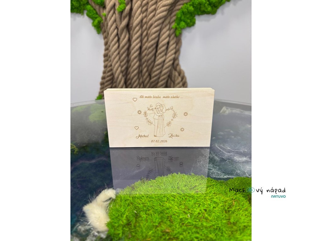Chcete sa odlíšiť od ostatných a darovať svadobný dar, inak povedané peniažky, štýlovo? Pripravili sme pre vás takúto krásnu drevenú obálku s gravírovanou,...