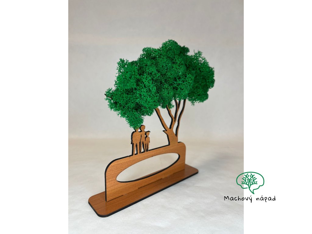 Dodajte svojmu domovu alebo sviatočnému stolu nádych romantiky a prírody s touto jedinečnou stolovou dekoráciou. Základ tvorí zaľúbený pár pod symbolickým stromom lásky, ktorého korene a koruna sú obklopené stabilizovaným machom (jablkovej farby) – 100 % prírodným materiálom, ktorý si zachováva svoju sviežu zelenú farbu a hebkosť bez potreby údržby.