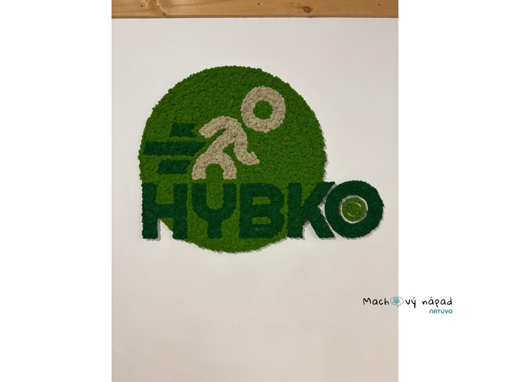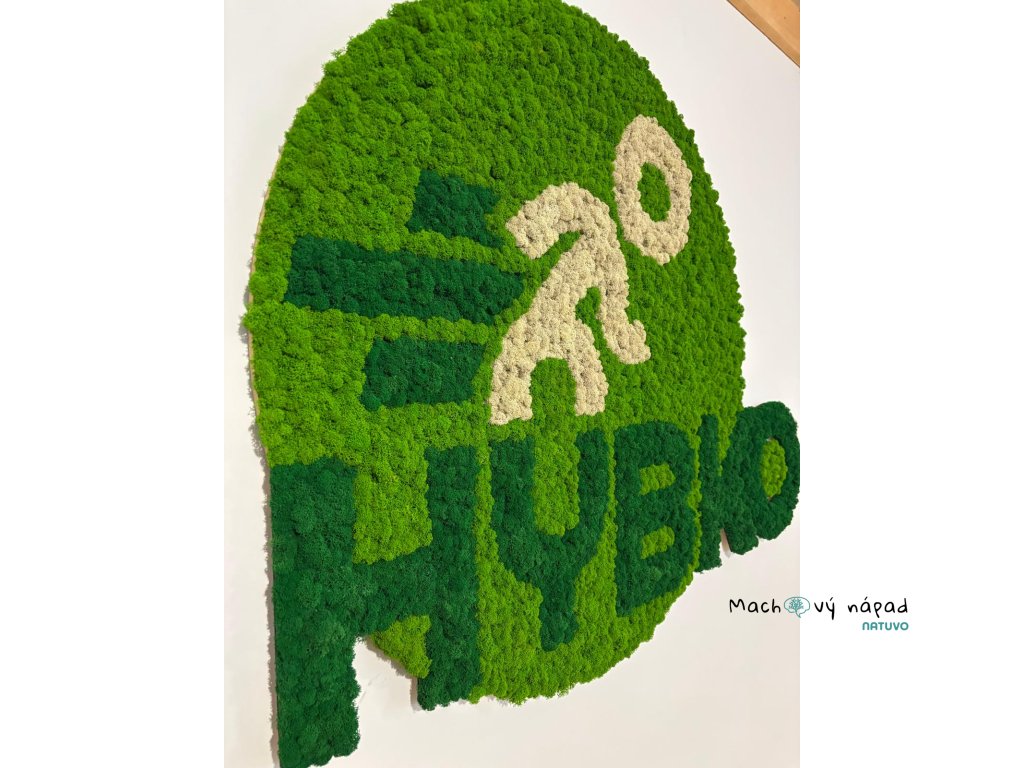 Na fotke môžete vidieť logo, kde kruh má priemer 100cm + z neho vychádzajú písmená. Podklad je doska, na ktorú sa lepí mach.