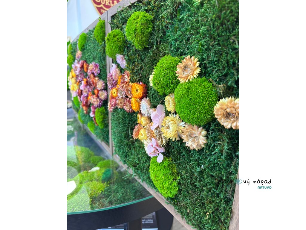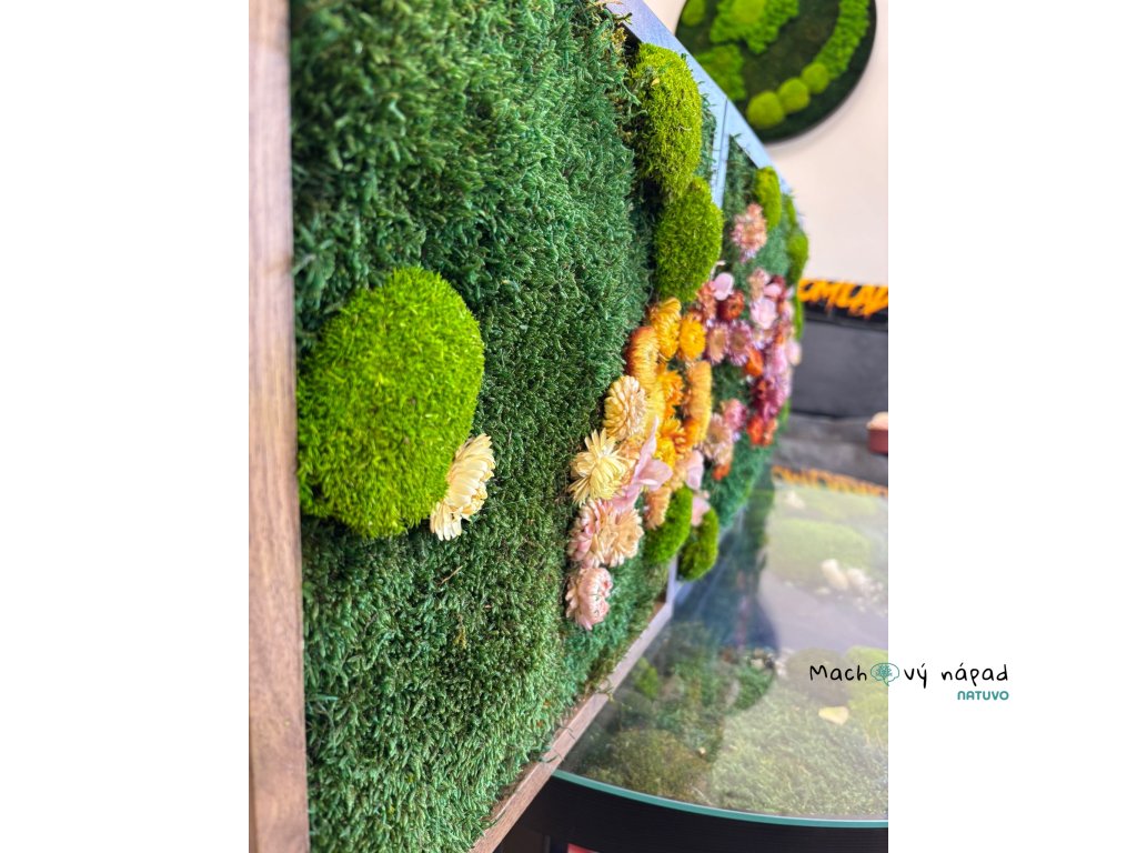 Obrazy vyrobené z stabilizovaného machu a sušenými kvetmi môžu byť estetickým doplnkom do interiéru alebo dekoráciou. Tieto obrazy sa často vytvárajú tým, že sa stabilizovaný mach umiestni na podklad a vytvorí sa kompozícia, ktorá môže zahŕňať rôzne tvary, vzory a farby machu. Takéto obrazy môžu mať prírodný a organický vzhľad a prispieť k estetike miestnosti alebo priestoru.