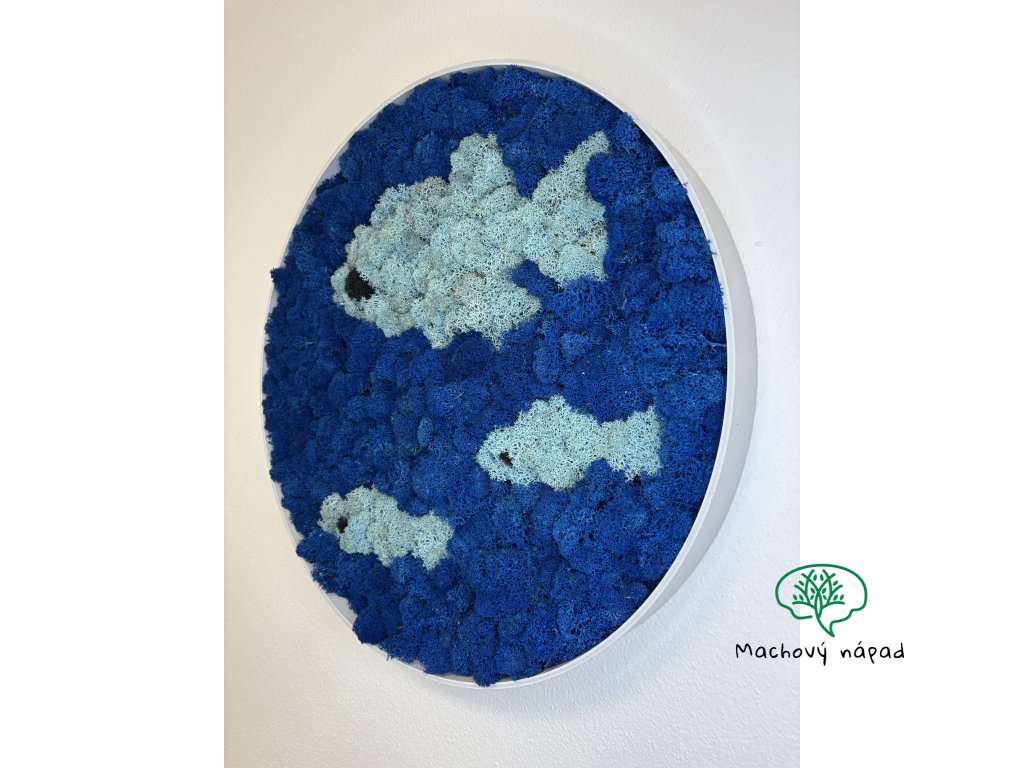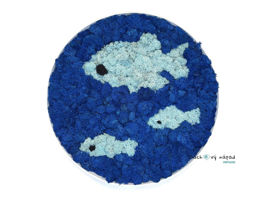 Tento kruh zo stabilizovaného lišajníka kombinuje svetlomodré a tmavomodré odtiene. Tmavomodrá plocha symbolizuje vodu a zo svetlomodrého lišajníka sú starostlivo vytvorené tri rybičky. Dekorácia prináša do priestoru sviežosť, hravosť a morskú atmosféru, vďaka čomu je ideálna do obývačky, detskej izby alebo kancelárie.