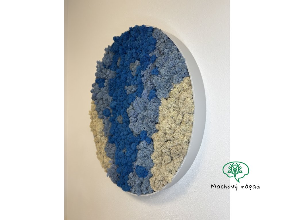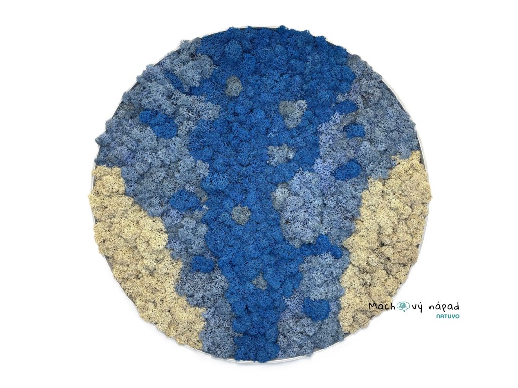 Tento kruh je vytvorený zo stabilizovaného lišajníka v kombinácii natural, svetlomodrej a tmavomodrej farby. Tmavomodrý lišajník je aranžovaný tak, aby pripomínal koral, čím dekorácia získava originálny a prírodou inšpirovaný vzhľad. Vhodná na ozdobenie obývačky, spálne či kancelárie, kde dodá nádych mora a pokoja.