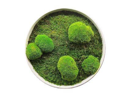 Machový obraz kruh v kombinácií so stabilizovaným lišajníkom je veľmi vkusný doplnok interiéru. Pôsobí v miestnosti moderne, nadčasovo a do interiéru prinesie pozitívnu atmosféru.