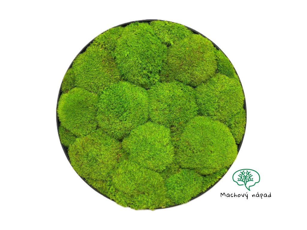 Machový obraz kruh v kombinácií so stabilizovaným kopčekovým machom je veľmi vkusný doplnok interiéru. Pôsobí v miestnosti moderne, nadčasovo a do interiéru prinesie pozitívnu atmosféru.
