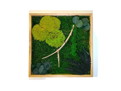 Machový obraz so stabilizovanými RASTLINAMI vo veľkosti 90 cm x 30 cm v kombinácií so stabilizovaným kopčekovým a plochým machom v hnedej farbe dreveného rámu ( popripade v hliníkovom ) je veľmi vkusný doplnok interiéru. Pôsobí v miestnosti 3D, moderne, nadčasovo a do interiéru prinesie pozitívnu atmosféru.