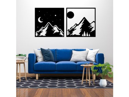 Tento nádherný dvoj obraz zobrazuje dve rôzne atmosféry horskej krajiny – prvý obraz zachytáva majestátne hory v noci pod hviezdnou oblohou, zatiaľ čo druhý prináša teplo a pokoj západu slnka nad vrcholkami hôr. Obrazy sú dostupné ako set, ale je možné ich zakúpiť aj samostatne podľa preferencií.