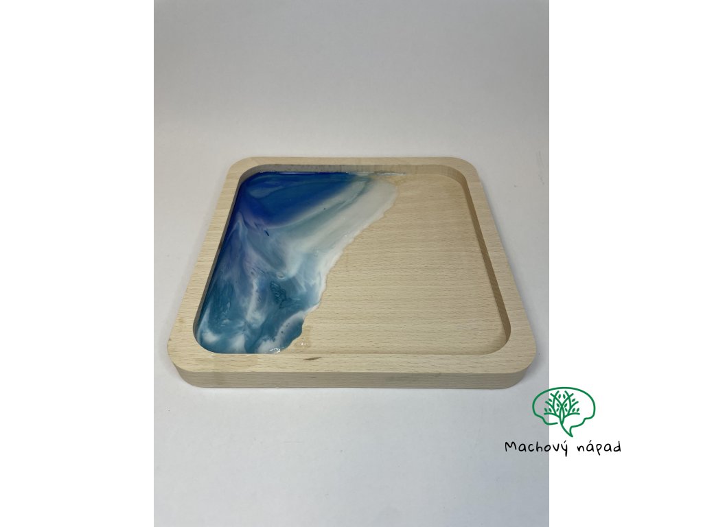 Každý kus je originál, vyrobený ručne a s dôrazom na detail. Kombinácia prírodného dreva a lesklého modrého epoxidu vytvára dojem, akoby si mal pred sebou malý umelecký objekt – no zároveň praktický a funkčný.