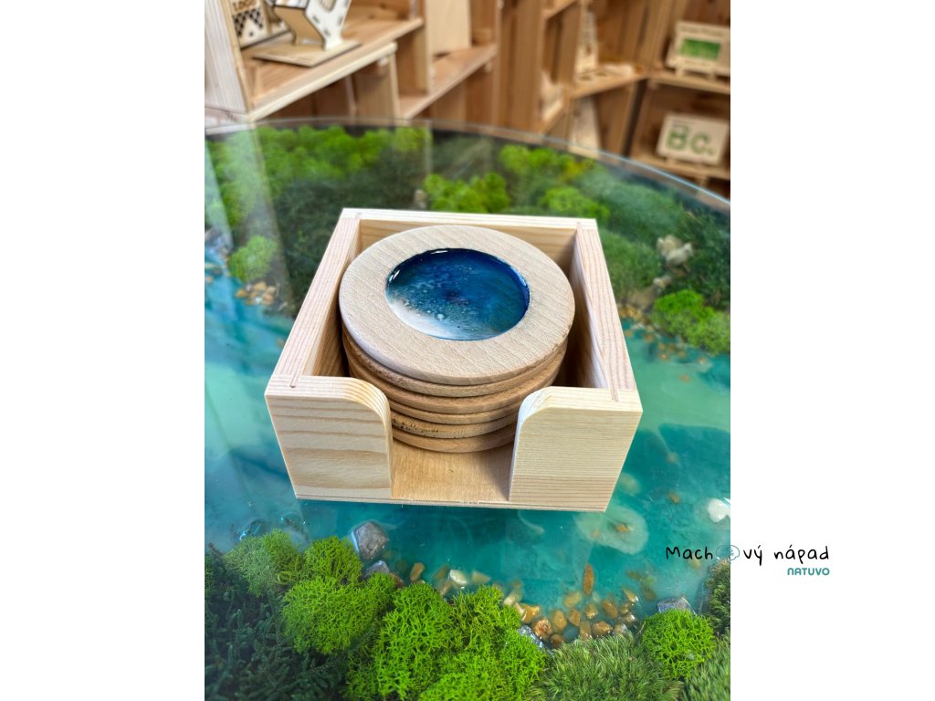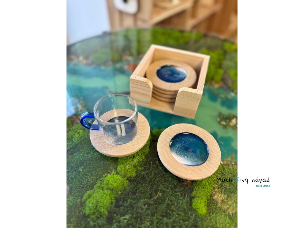 Táto sada podšálok je vyrobená z kvalitného dreva a epoxidovej živice, ktorá vytvára jedinečný efekt morskej vlny. Vďaka ručnej výrobe je každý kus originálny – žiadne dve podšálky nie sú úplne rovnaké.