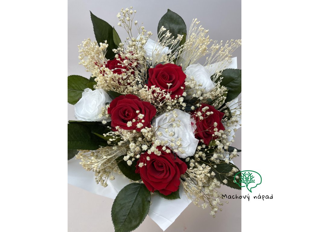 Kytica Ravea je stelesnením rovnováhy. Červené a biele stabilizované ruže spolu vytvárajú klasickú a nadčasovú kombináciu, ktorú dopĺňajú prírodné a sušené prvky. Každý detail je starostlivo ručne vyskladaný, aby pôsobil harmonicky a zároveň pôsobivo.